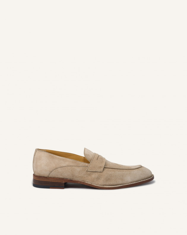 Our Nanto loafer with a rounded toe is enriched by adler stitching on the upper. This timeless suede calf shoe offers a more casual look with greater softness and comfort. Blake Flex construction and a rubber sole guarantee lightness and flexibility.