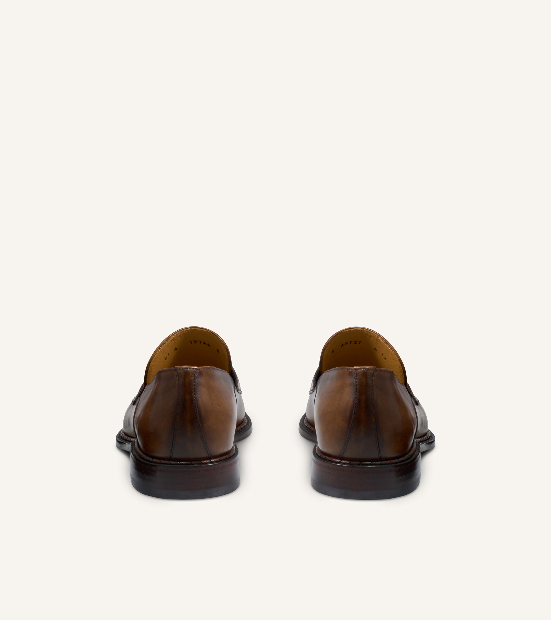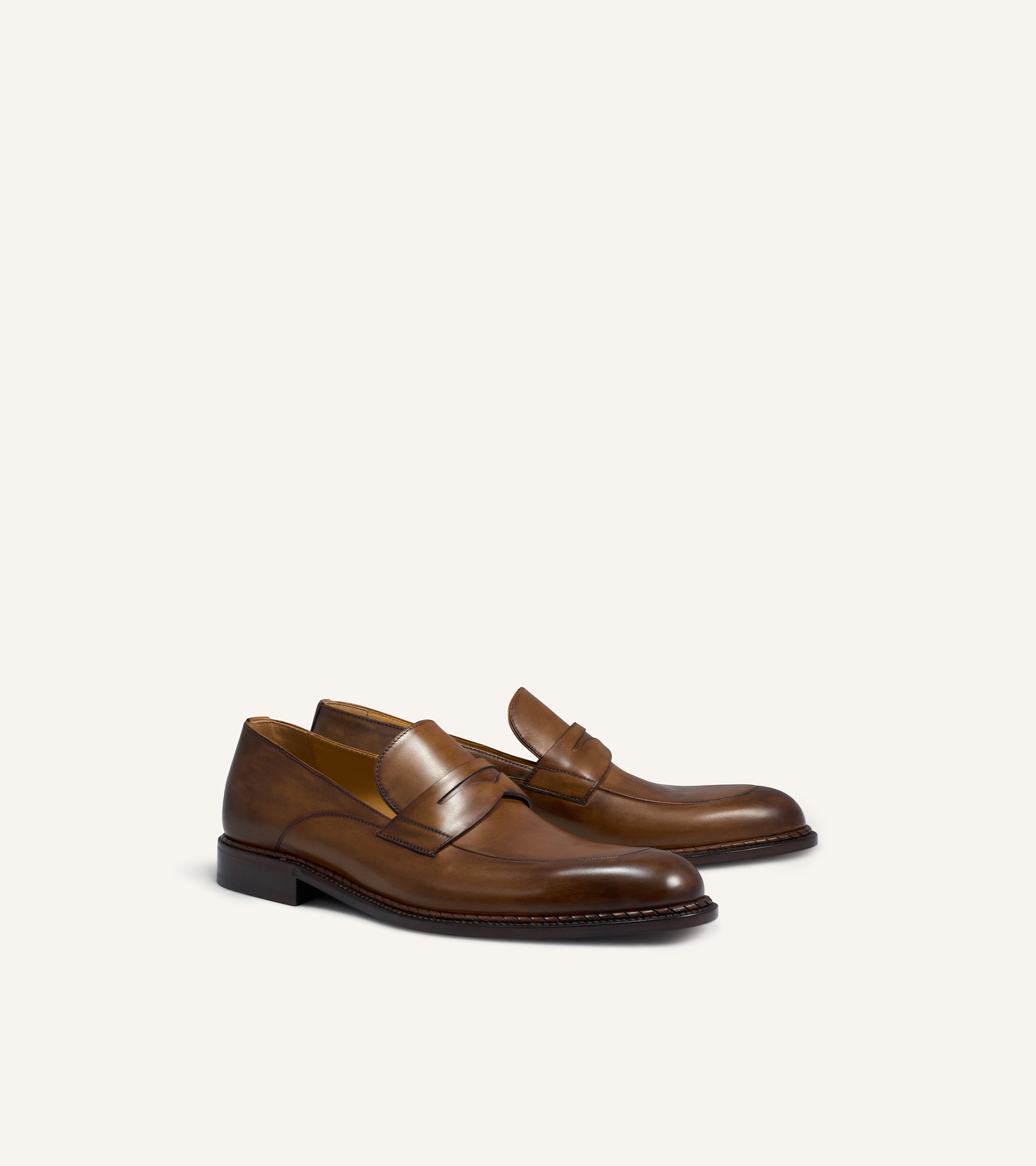 The Venezia penny loafer showcases a timeless and sophisticated design, crafted with the "Sacchetto Bolognese" construction, which offers a high level of comfort and flexibility. Made from high-quality calf leather, it features the iconic "Spiral" detail, a hallmark of Testoni craftsmanship. The Lambrusco-colored leather sole adds a distinctive touch, elegantly highlighting the brand's signature style.